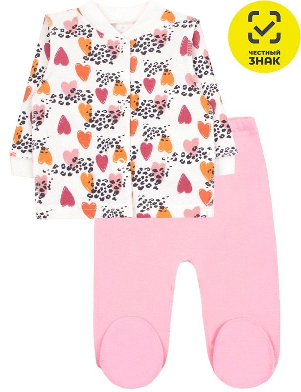 Комплект ясельный из мягкого футера с начесом, швы наружу. Кофточка на кнопочках и с открытыми ручками. Пояс ползунков на резинке, ножки закрытые.