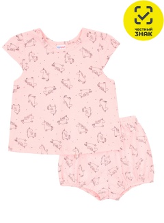 Комплект для девочки из хлопкового набивного полотна состоит из 2-х предметов. Футболка с короткими рукавами-крылышко, округлой горловиной, свободного силуэта. Шорты по талии и нижним срезам на резинке, идеально подходят под памперс.