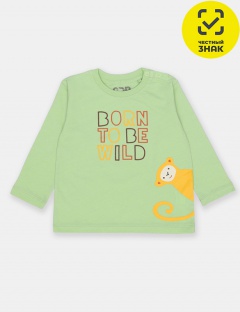 Джемпер для мальчика из мягкого трикотажа. Слегка спущенное плечо и свободный силуэт. Горловина круглая, оформлена кашкорсе. На плече застежка на кнопки. На полочке выполнена шелкография - обезьянка. Надпись гласит - рожденный быть свободным.