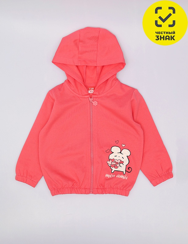 Производитель: ТМ CRB Артикул: CSBG 64036-25-434 Толстовка для девочки Пол: девочка Полотно: футер начес Состав: хлопок 100% Возраст: 0-2
