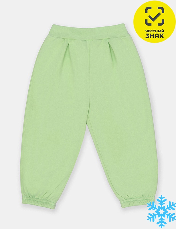 Брюки для девочки из мягкого футера с начесом. Пояс из рибаны. На передних половинках расположены встречные складки. Низ брюк на резинке.