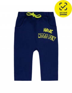 Брюки из футера двухнитки с начесом, на эластичном поясе со шнуром, карманы по бокам, спереди декорированы принтом.