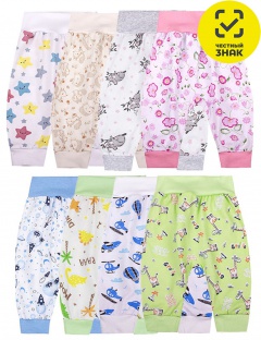 Ползунки с ластовицей из набивного кулирного полотна с широкой резинкой из рибаны с лайкрой на поясе.