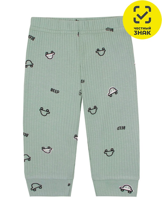 Брюки ясельные из полотна рибана, на поясе на резинке, по нижним срезам на манжетах.
