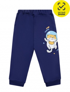 Брюки ясельные из интерлока, на поясе на резинке, по низу на манжетах, на левой передней половинке печать.