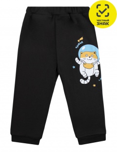 Брюки ясельные из интерлока, на поясе на резинке, по низу на манжетах, на левой передней половинке печать.