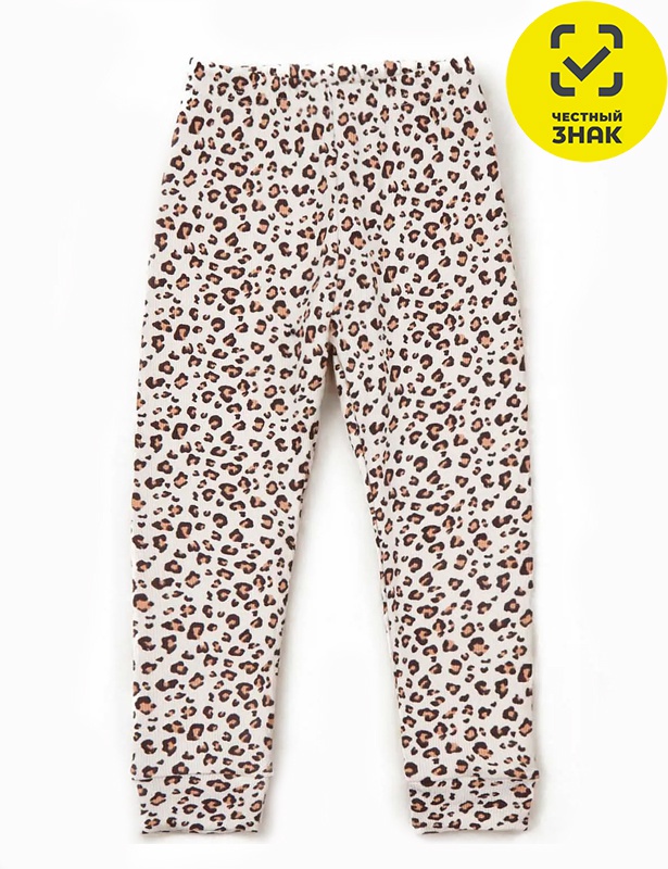 Брюки для девочки из набивного полотна кашкорсе, на поясе на резинке, по низу на манжетах.