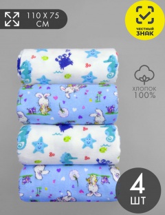 Пеленки фланелевые размером 75х110 см. Набор из 4 штук, цена указана за набор.