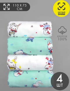 Пеленки фланелевые размером 75х110 см. Набор из 4 штук, цена указана за набор.
