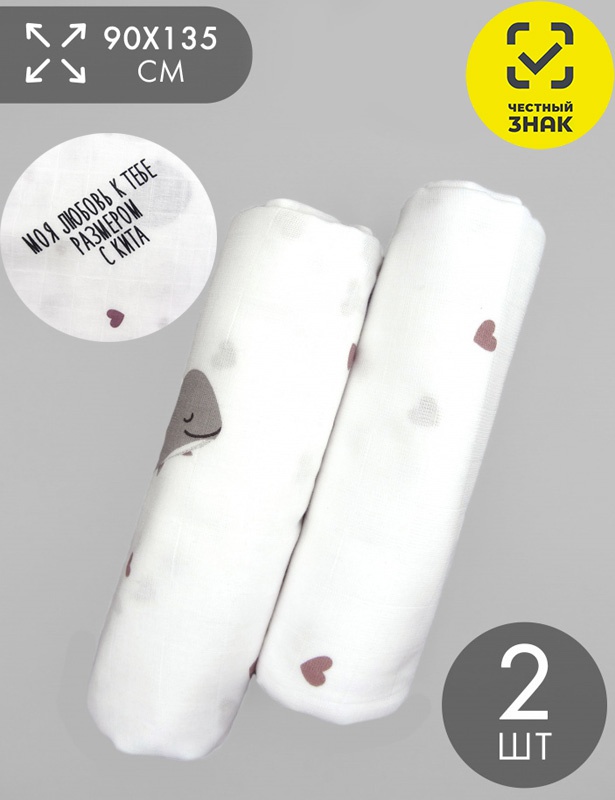 Пеленки из муслина размером 90х135 см. Набор из 2 штук, цена указана за набор.