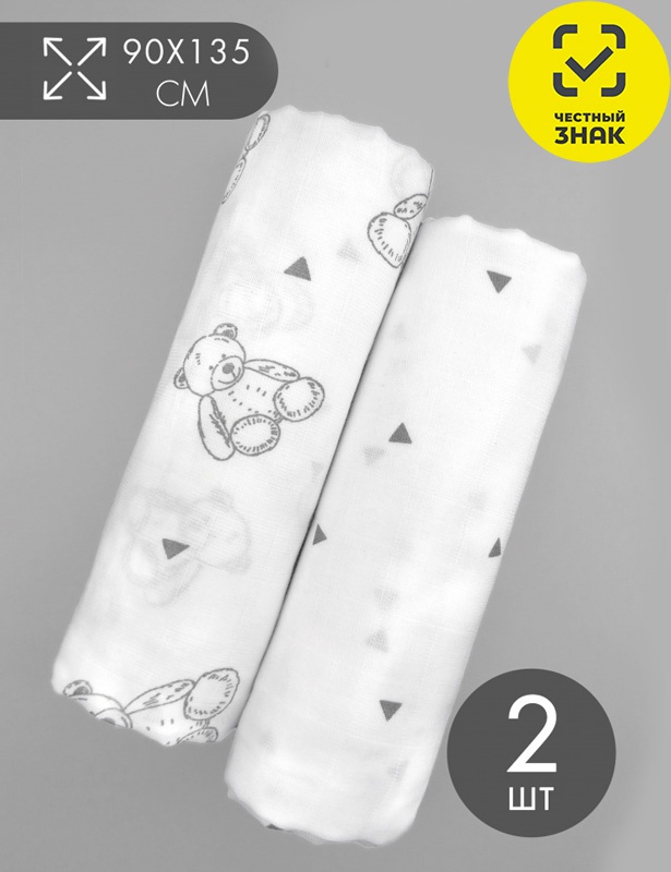 Пеленки из муслина размером 90х135 см. Набор из 2 штук, цена указана за набор.