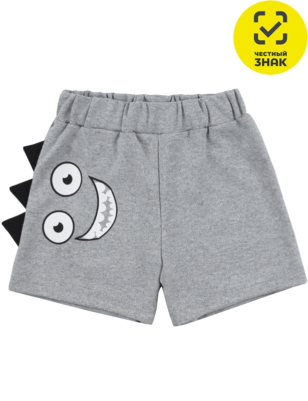 Шорты для мальчика из гладкокрашеного полотна, на поясе на резинке. Декорированы принтом.