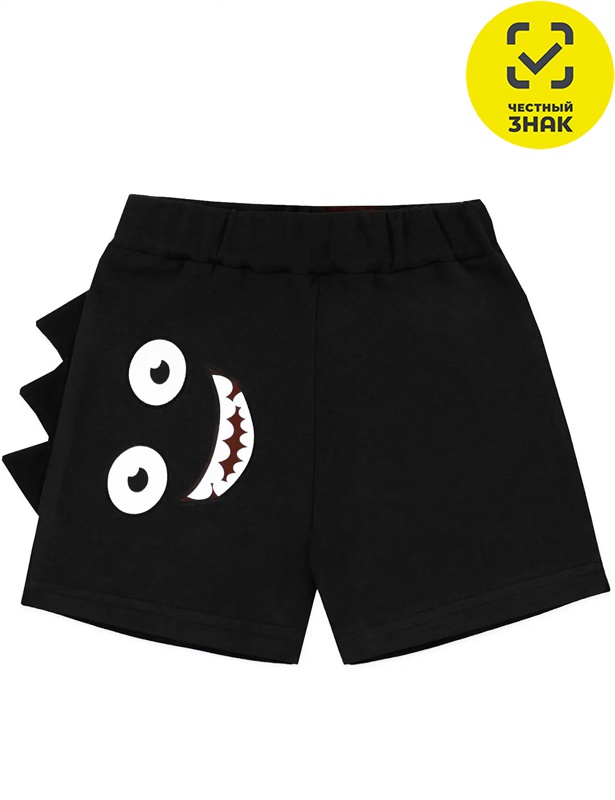 Шорты для мальчика из гладкокрашеного полотна, на поясе на резинке. Декорированы принтом.