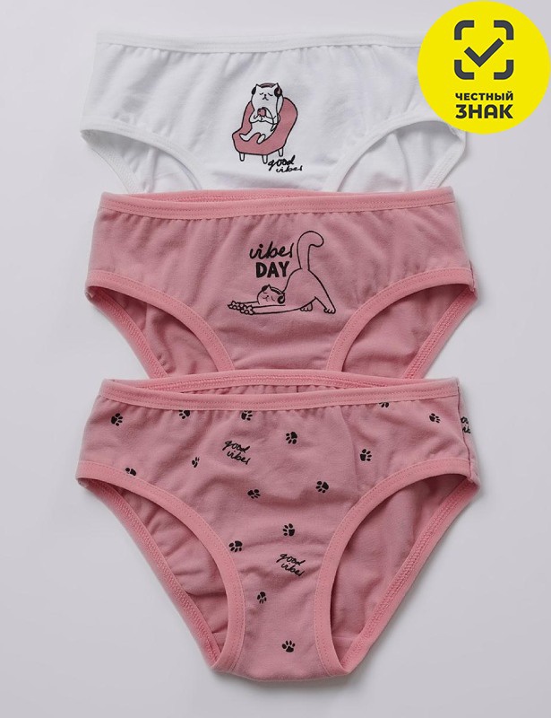 Комплект трусов для девочки из хлопка с эластаном. Классическая модель дополнена резинкой по талии и ножке для обеспечения комфорта при движении. Стильные принты и набивки подарят хорошее настроение и уверенность на целый день!