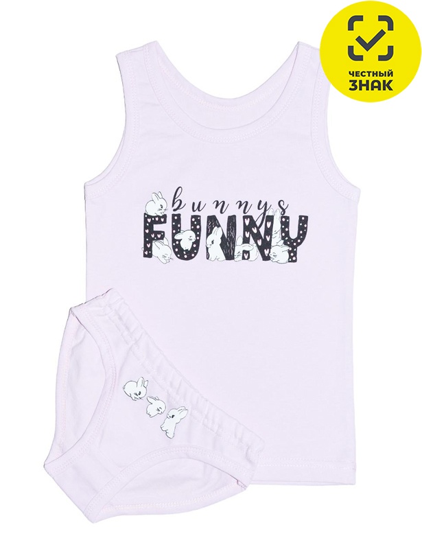 Набор для девочки (майка +трусы). Майка с печатью на переде, горловина и пройма окантованы. Трусы на резинке, ножки окантованы, печать на переде.