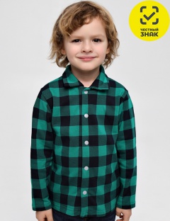 Рубашка для мальчика из футера двухнитки с начесом, с длинными втачными рукавами с манжетами и заплатками на локтях, отложной воротник, застежка центральная на кнопки.