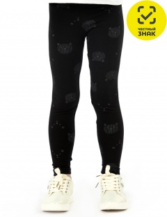 Лосины из набивного полотна, облегающего кроя, пояс на резинке, низ обработан швом вподгибку.