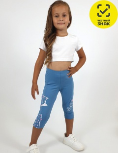 Лосины для девочки, укороченные, с боковым швом, с печатью на передних половинках.