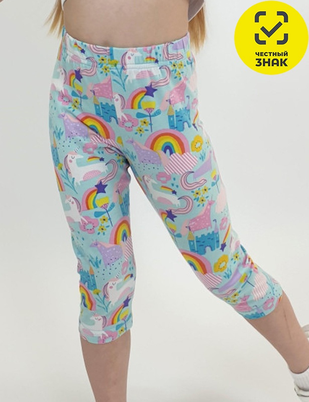 Лосины для девочки выполнены из набивной кулирки с лайкрой. Лосины - укороченные без боковых швов, низ подшит.