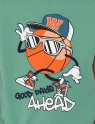 Футболка оверсайз для мальчика из кулирной глади. Рукав-реглан, горловина обработана притачной бейкой из рибаны с лайкрой. Перед декорирован принтом "Впереди хорошие дни?". Рукав декорирован вязаной нашивкой.