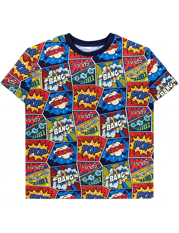 Футболка для мальчика из набивного полотна, с короткими втачными рукавами, округлой горловины.