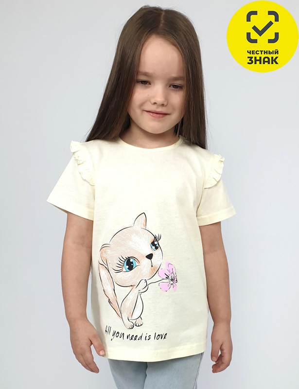 Производитель: ИП Лунева Артикул: 3-42-1 Футболка для девочки Пол: девочка Полотно: кулирная гладь Состав: хлопок 100% Возраст: 2-7