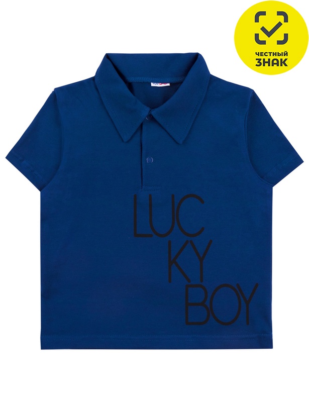 Футболка-поло для мальчика из гладкокрашенного полотна. Футболка с короткими рукавами и отложным воротником. Спереди застежка на пуговицы. Декор - надпись "LUCKY BOY".