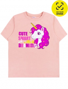 Футболка из гладкокрашеного полотна, короткие втачные рукава, округлый вырез горловины, окантованный бейкой в цвет основного полотна, на полочке печать.