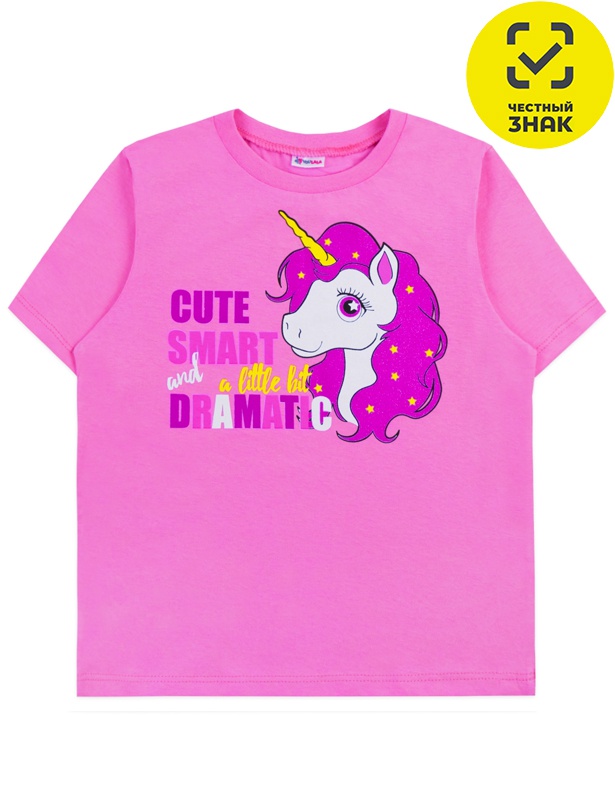 Футболка из гладкокрашеного полотна, короткие втачные рукава, округлый вырез горловины, окантованный бейкой в цвет основного полотна, на полочке печать.