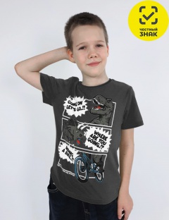 Футболка для мальчика прямого силуэта, перед с печатью, рукав втачной короткий. Горловина обработана ластиком. Низ изделия и рукава подшиты.