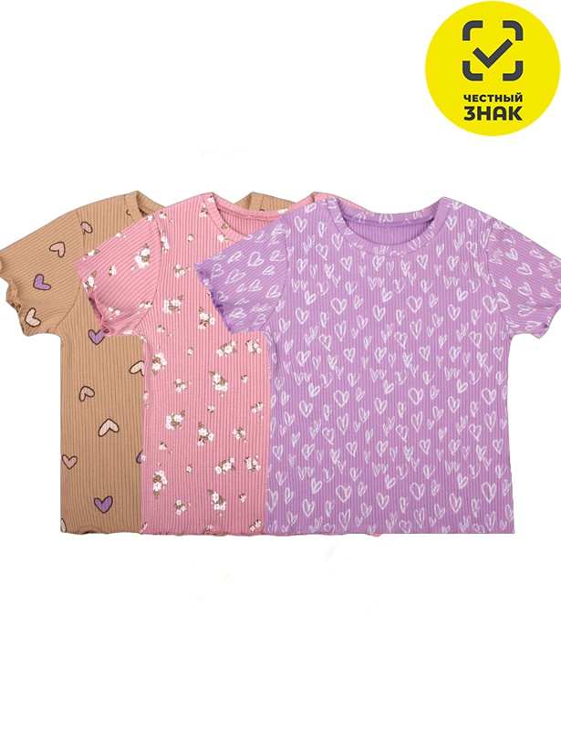 Производитель: ТМ У+ Артикул: 3024-ф Футболка для девочки Пол: девочка Полотно: кашкорсе Состав: 95% хлопок, 5% лайкра Возраст: 2-7