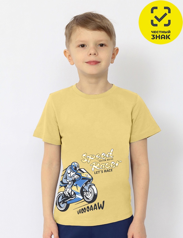 Производитель: ТМ CRB Артикул: CSKB 64283-30K Футболка для мальчика (Желтый) Пол: мальчик Полотно: кулирная гладь Состав: хлопок 100% Возраст: 2-7