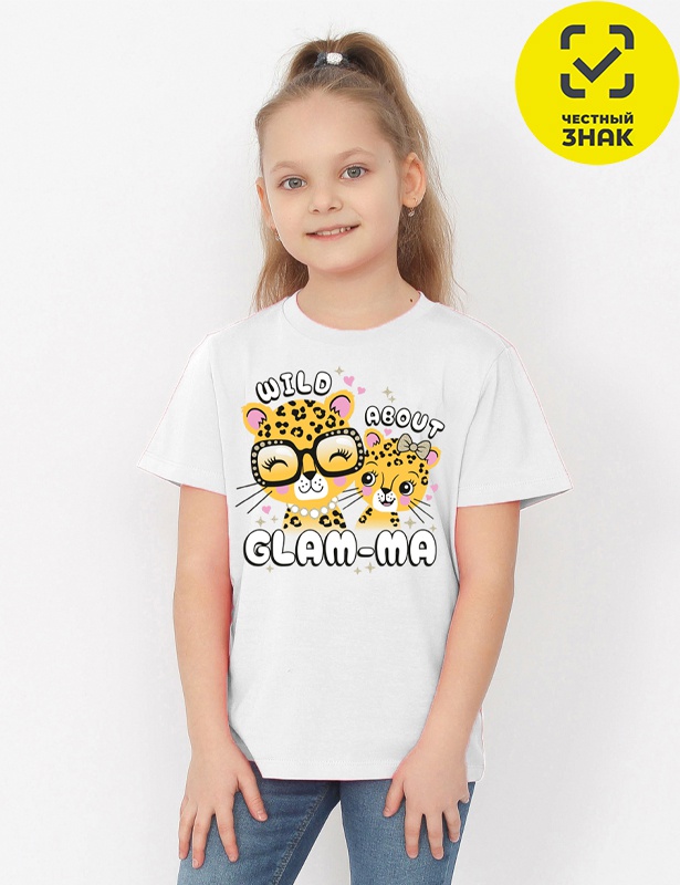 Футболка для девочки из кулирного полотна, с короткими втачными рукавами, округлая горловина, перед декорирован принтом.