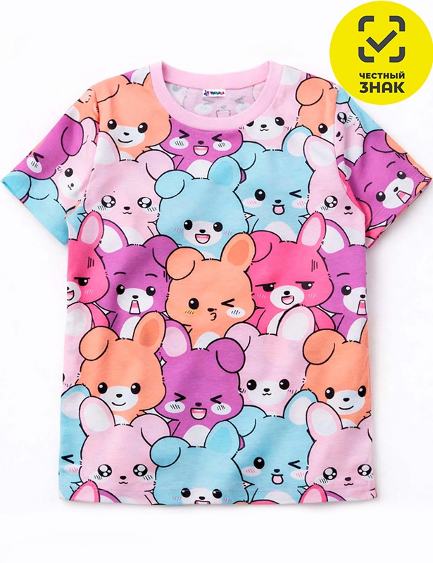 Футболка для девочки из набивного полотна, с короткими втачными рукавами, округлая горловина