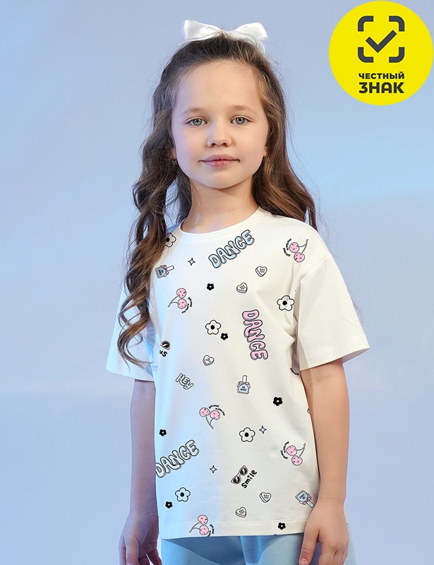 Производитель: ТМ Clever Артикул: CLE Футболка дев. 866748/13кд_п (молочный) Пол: девочка Полотно: кулирная гладь Состав: хлопок 100% Возраст: 2-7