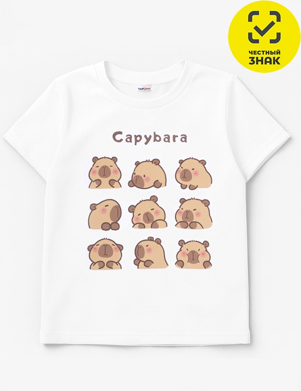 Футболка детская из набивного полотна, с короткими втачными рукавами, округлой горловиной, на полочке печать.
