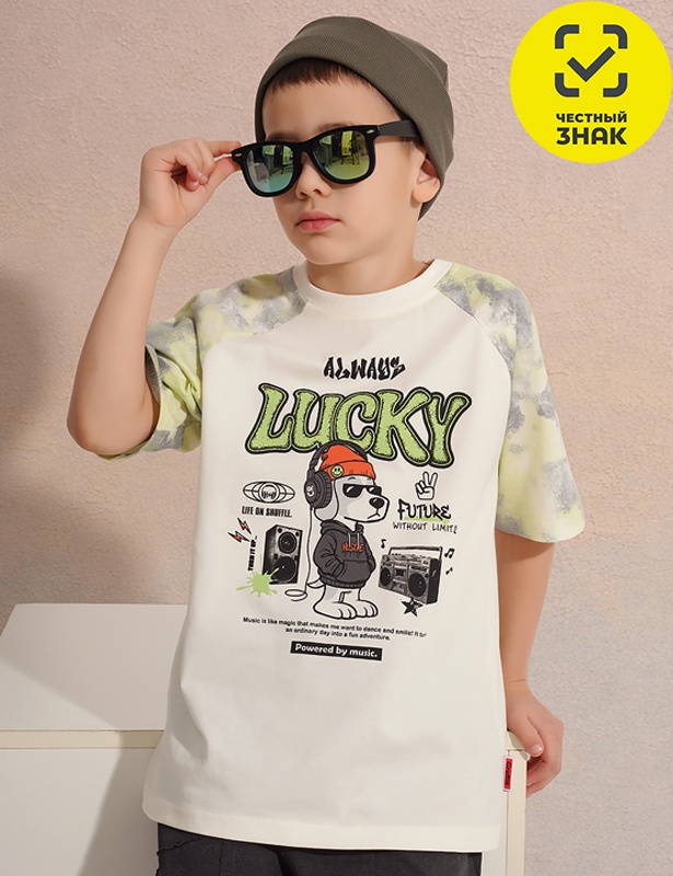 Футболка реглан для мальчика из 100 % хлопка. Акцентный принт и декоративная вшивка. Комфортная, стильная, для повседневной носки.