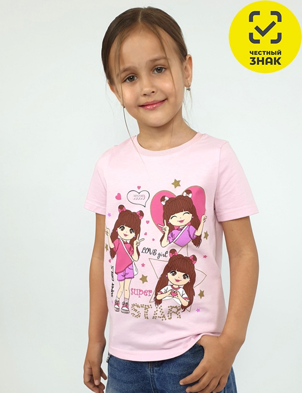 Производитель: ИП Лунева Артикул: 6-91-2 Футболка для девочки Пол: девочка Полотно: кулирная гладь Состав: хлопок 100% Возраст: 2-7