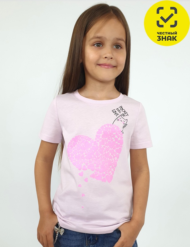 Футболка для девочки - прямого силуэта, печать на переде, короткий втачной рукав. Низ рукава и фуфайки подшит. Горловина обработана ластиком.