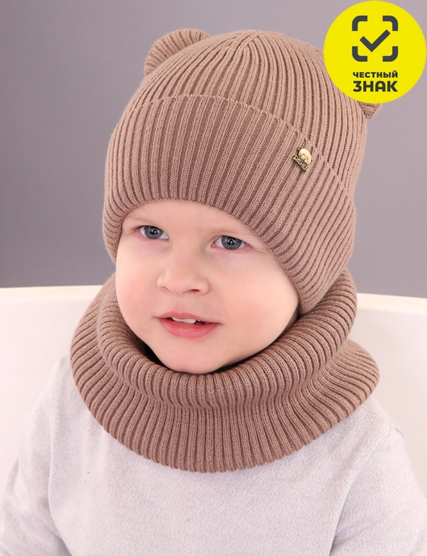 Комплект детский (шапка и шарф-хомут) демисезонный, с хлопковым подкладом. Шапка с отворотом, ушками, декорирована нашивкой.