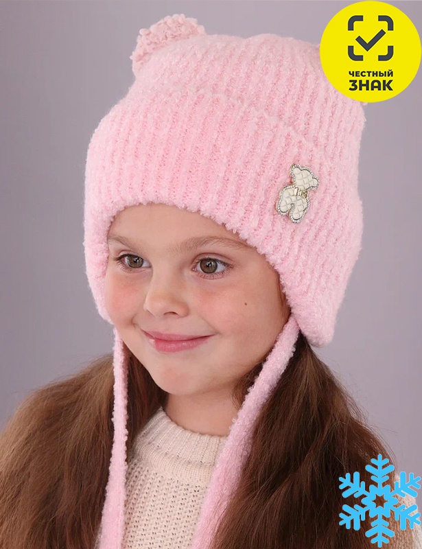 Производитель: ТМ Теплыши Артикул: M-05-64 (м) Шапка для девочки Пол: девочка Полотно: вязаное полотно Состав: 30% шерсть, 70% акрил, подклад: 95% хб, 5% эл Возраст: 2-7