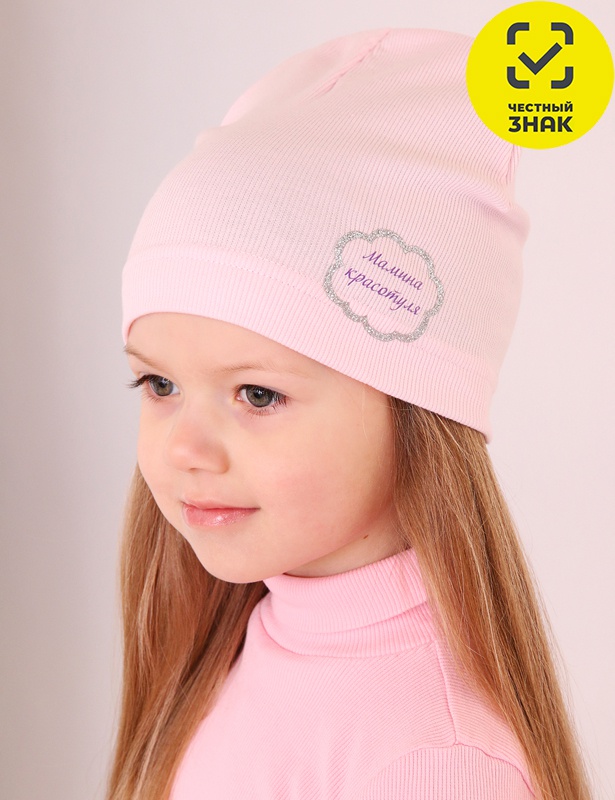 Шапка для девочки на сезон осень-весна, декорирована нашивкой.