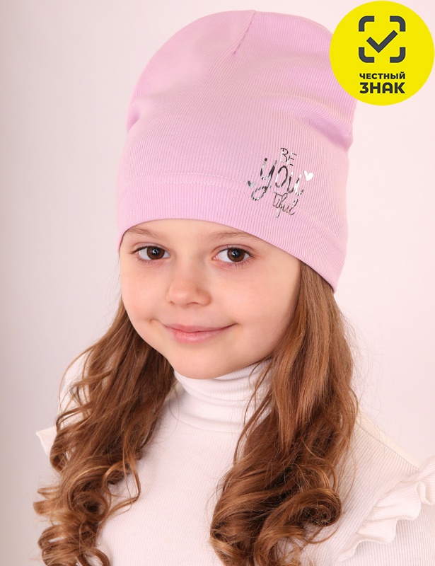 Шапка для девочки на сезон осень-весна, декорирована нашивкой.
