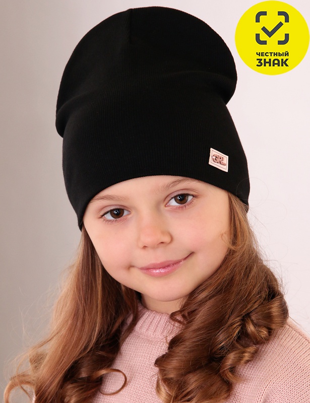 Шапка для девочки на сезон осень-весна, двойная, декорирована нашивкой.