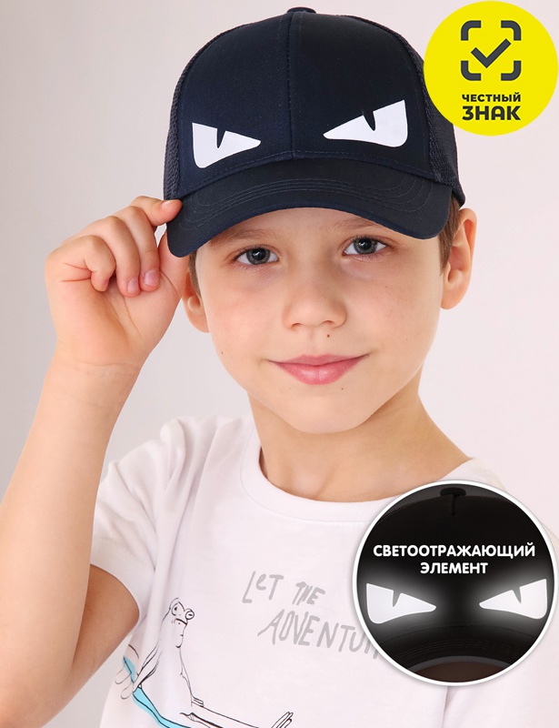 Бейсболка из хлопкового полотна, декорирована свтеоотражающим термопринтом.
