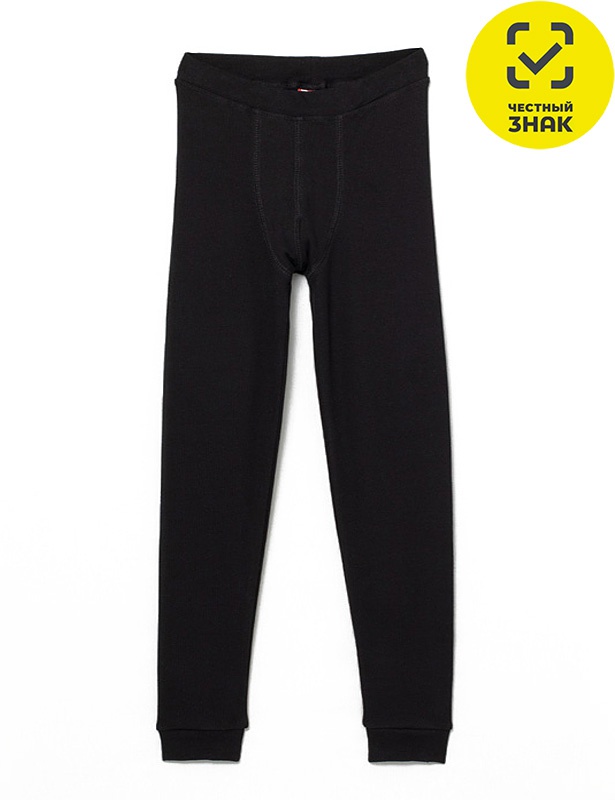 Кальсоны из рибаны с эластаном и начесом с изнаночной стороны, с клиновидными вставками спереди. Притачной пояс и манжеты по низу ножек выполнены из рибаны с эластаном. В пояс вставлена резинка. Кальсоны без боковых швов.