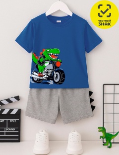 Комплект для мальчика состоит из футболки и шорт, выполненных из гладкокрашеного кулирного полотна. Футболка свободного силуэта с округлой горловиной и короткими рукавами, на полочке принт. Шорты на эластичном поясе с кулиской.