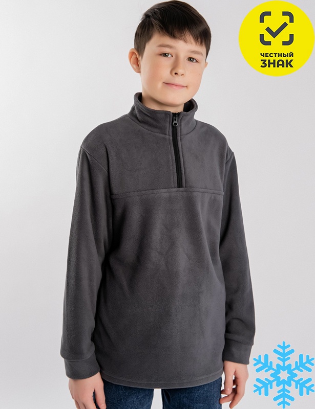 Толстовка для мальчика из теплого и мягкого флиса, с длинными втачными рукавами с манжетами, застежка на молнию, воротник-стойка.