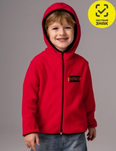 Куртка флисовая, с капюшоном и длинными втачными рукавами, центральной застежкой на молнию. Куртка с контрастной окантовкой по всем срезам. На полочке декор: печать.
