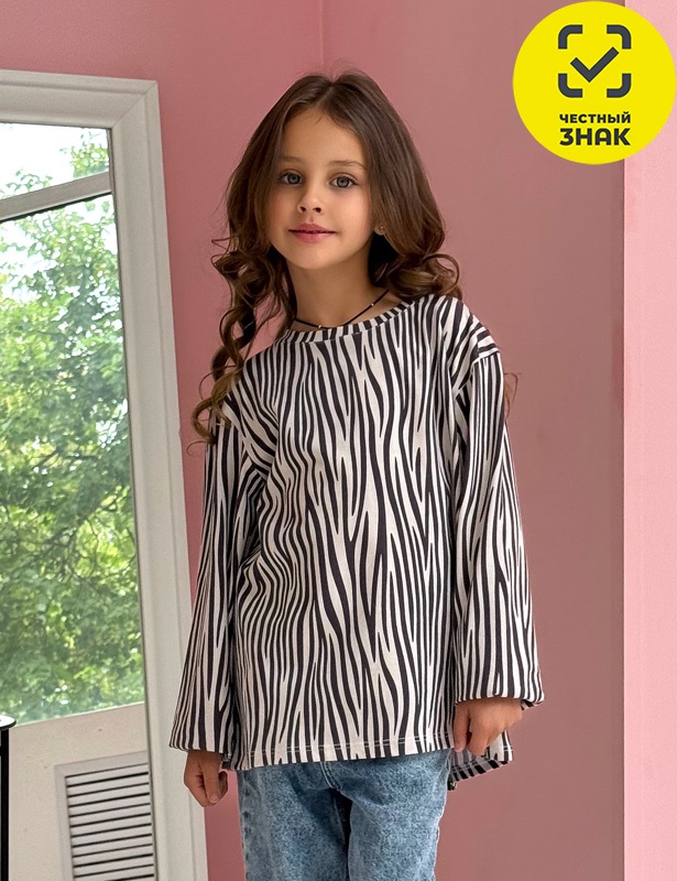 Производитель: ТМ Chilleasy Артикул: 130011C-44 Лонгслив для девочки (Зебра (набивка)) Пол: девочка Полотно: кулирная гладь Состав: хлопок 100% Возраст: 2-7